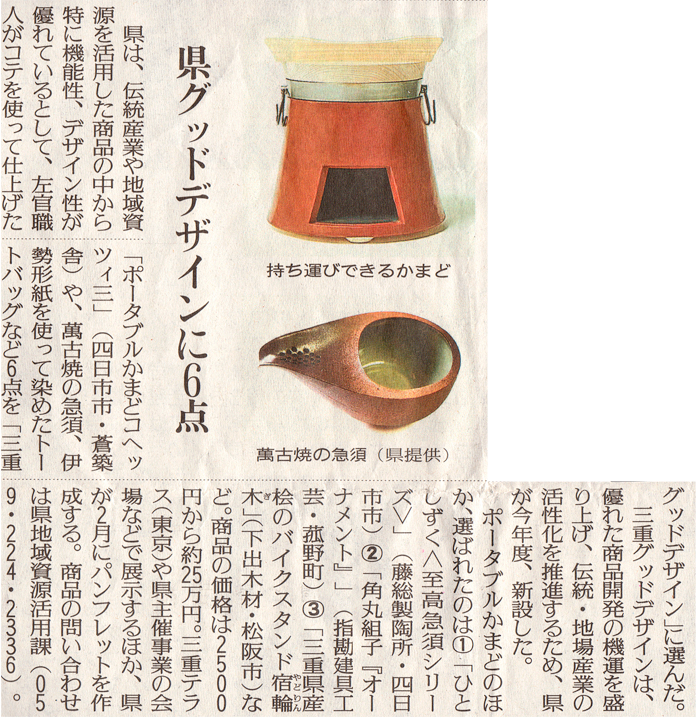 - 読売新聞(1月14日)で平成26年度三重グッドデザインに選ばれたことが掲載されました >>記事